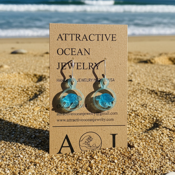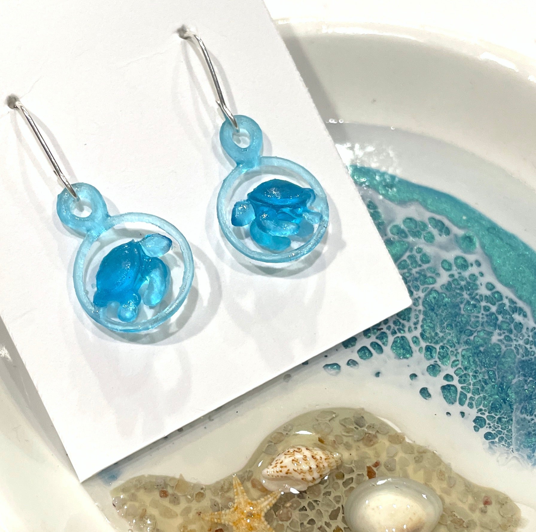 3D Printed Turtle designed by Attractive Ocean Jewelry. Made out of Polymer Resin, choice of Translucent Blue, Dark Blue, Green & Red.