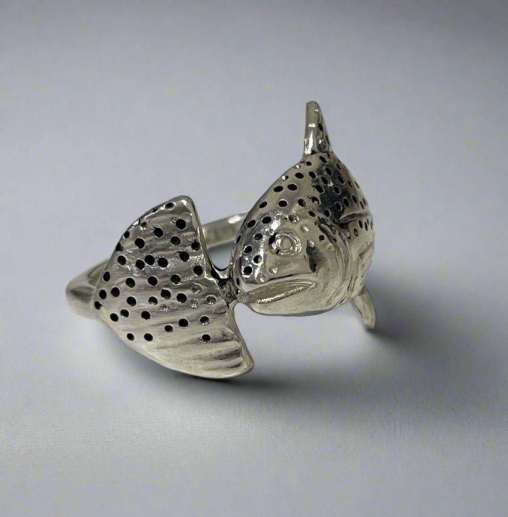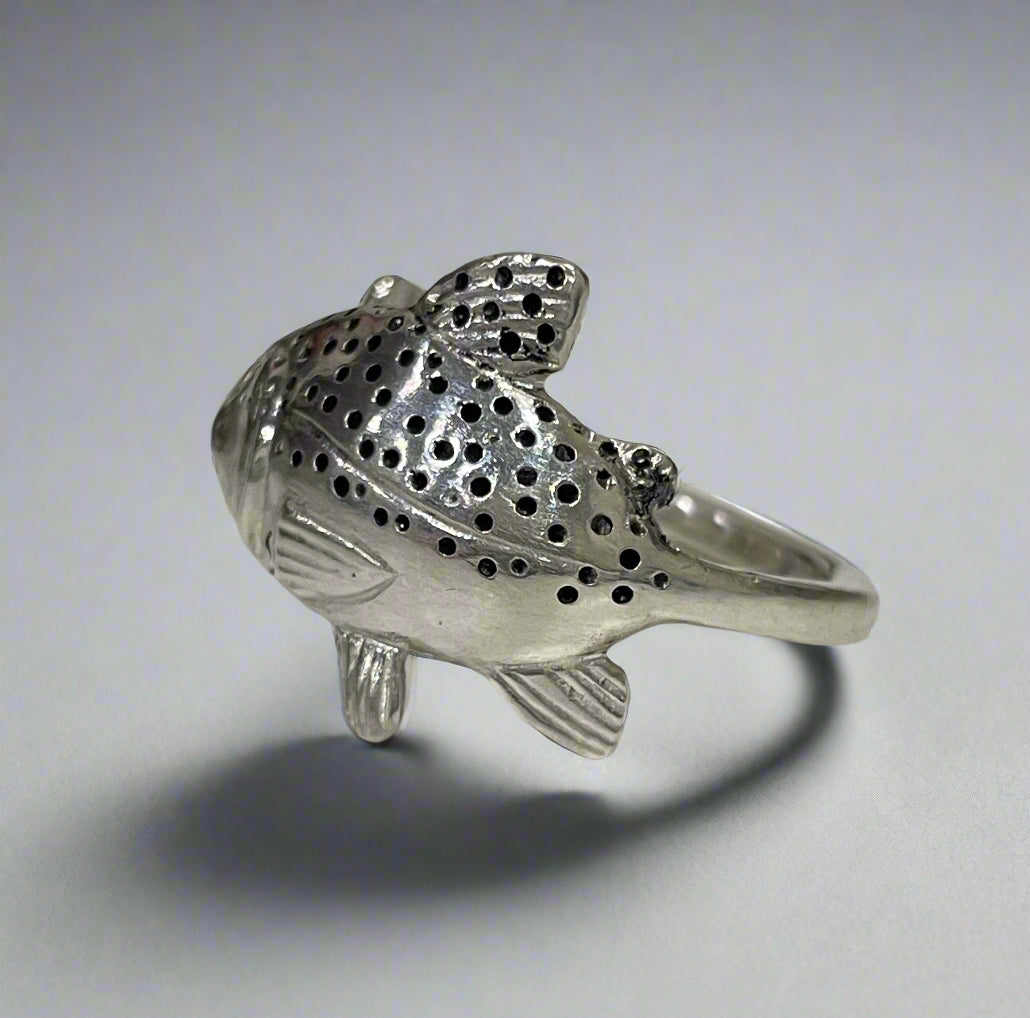 The Freshwater Trout design is intricately carved into the sterling silver, creating a lifelike and detailed representation of this remarkable fish.