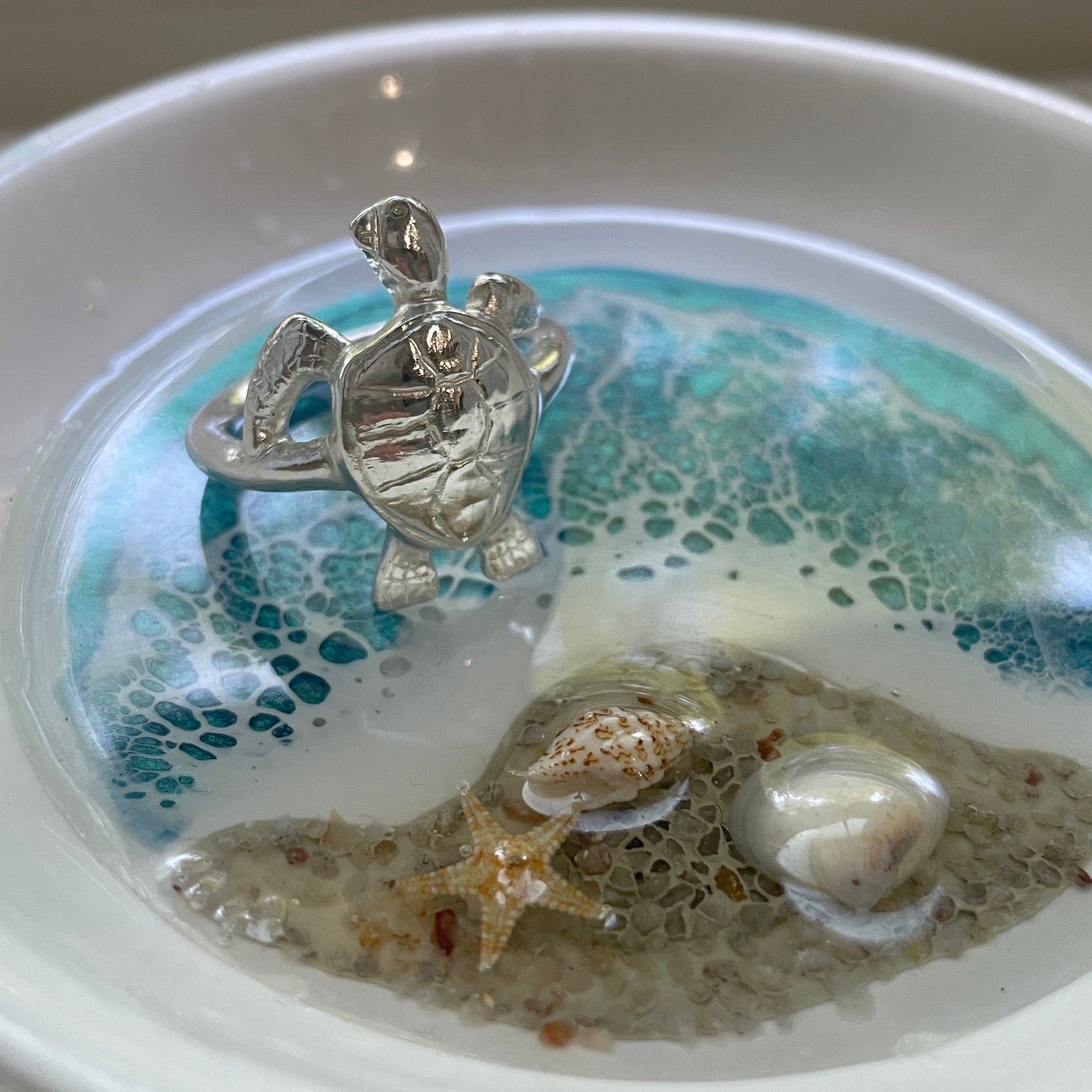 This handmade sterling silver Turtle Ring features a beautifully detailed sea turtle, symbolizing harmony, balance, and the ocean’s gentle flow. Expertly crafted with fine details, it makes a meaningful piece for ocean lovers and a timeless addition to any jewelry collection.